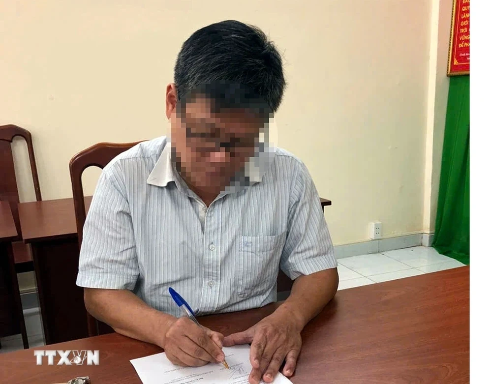 Nguyễn Duy Thức tại Cơ quan Cảnh sát điều tra, Công an Thành phố Hồ Chí Minh. (Ảnh: TTXVN phát)