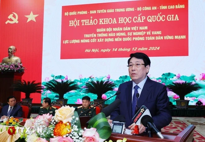 Sáng 14/12, tại Hà Nội, Bộ Quốc phòng chủ trì, phối hợp với Ban Tuyên giáo Trung ương, Bộ Công an và tỉnh Cao Bằng tổ chức Hội thảo khoa học cấp quốc gia với chủ đề “Quân đội nhân dân Việt Nam - Truyền thống hào hùng, sự nghiệp vẻ vang, lực lượng nòng cốt xây dựng nền quốc phòng toàn dân vững mạnh.”