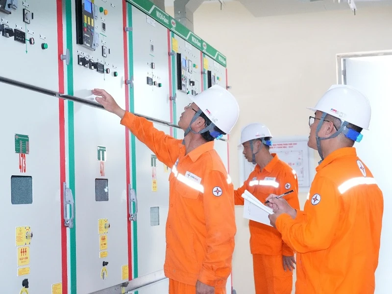 Công nhân Xí nghiệp lưới điện cao thế Thanh Hóa (PC Thanh Hóa) kiểm tra hoạt động các thiết bị tại TBA 110kV trước khi đưa vào vận hành theo mô hình không người trực.