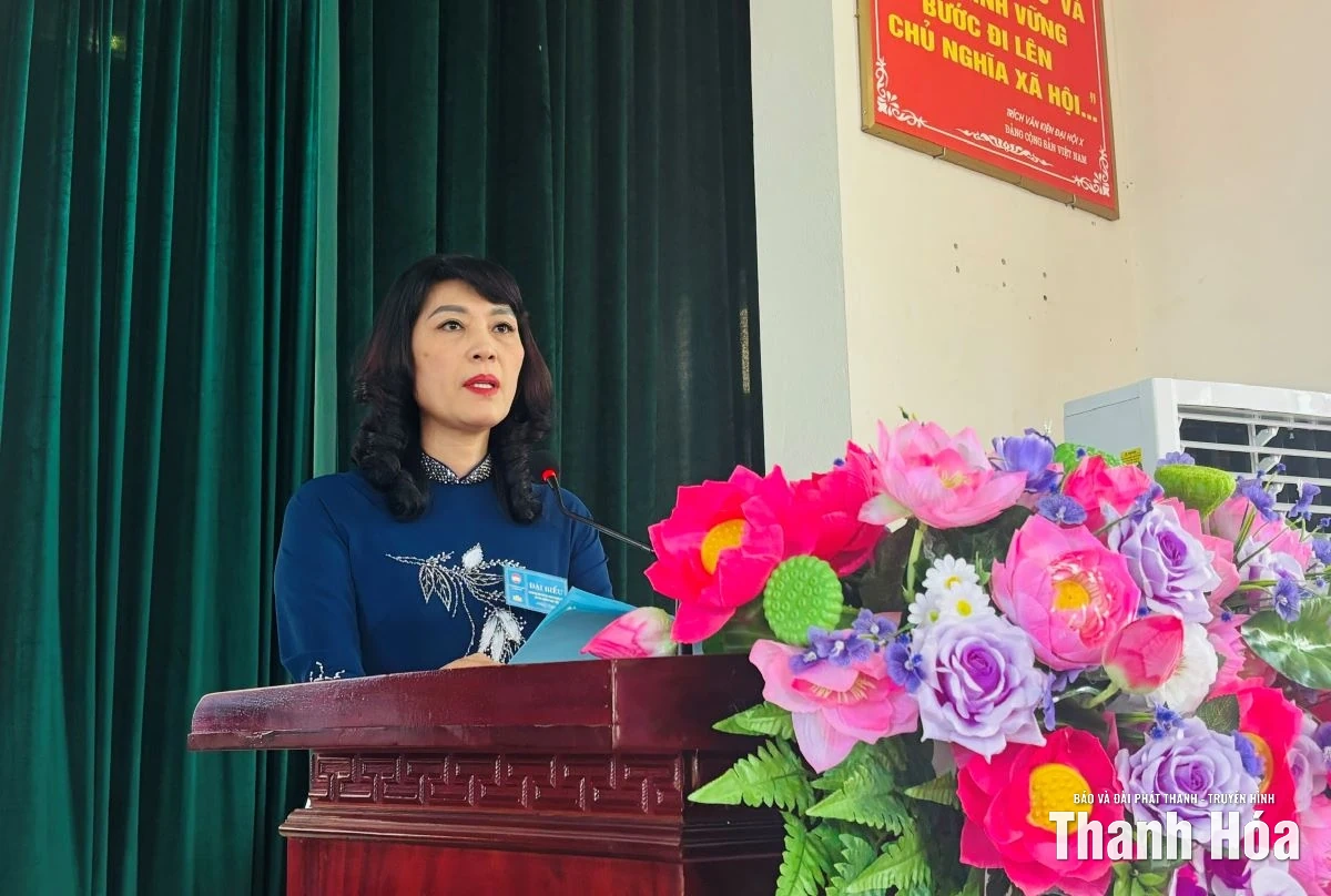 Đồng chí Nguyễn Thị Sơn, Bí thư Đảng ủy, Chủ tịch HĐND xã Quảng Ninh phát biểu tại Đại hội.