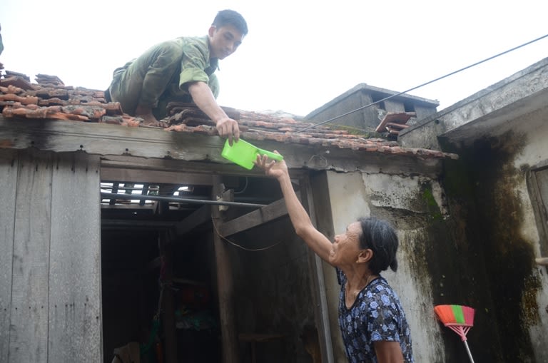 Mọi người trong xóm còn đang bận giúp nhau thay lại cột kèo, lợp lại mái nhà hay trát lại tường bằng rơm nhào bùn ngấu. Xong việc, mọi người cùng ngồi trên chõng tre chia nhau củ khoai luộc uống bát nước vối thơm và áng chừng xem cả làng có bao nhiêu thiệt hại.
