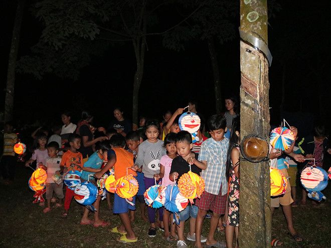 Đó là những chiếc đèn được tạo ra từ nụ cười và bàn tay nhỏ bé của đám trẻ con tóc râu ngô. Có những chiếc đèn ông sao năm cánh không đều nhau, lớp giấy ở ngoài thì nhăn nhúm nhưng vẫn dễ thương làm sao.