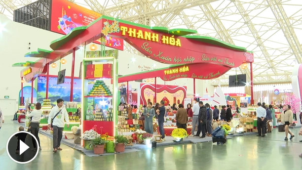 Không gian trưng bày, giới thiệu sản phẩm hàng hóa tiêu biểu của Thanh Hóa tại khu H1-10 (Hall 1), Trung tâm Triển lãm Việt Nam (Hà Nội) với chủ đề: “Thanh Hóa: Sắc Xuân hội nhập - Sản vật xứ Thanh” được đông đảo khách hàng đến tham quan, mua sắm và trải nghiệm.