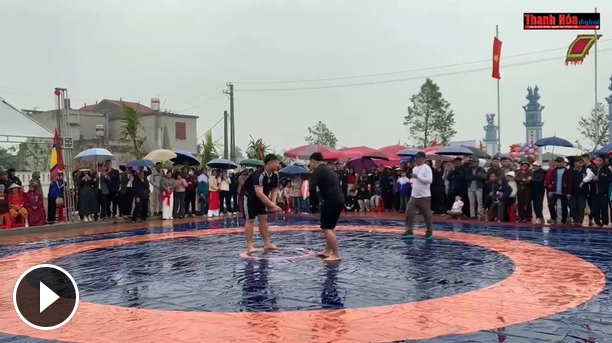 Mặc dù trời mưa, song đông đảo người dân tập trung quanh sới vật, chăm chú theo dõi, cổ vũ, tạo nên không khí lễ hội sôi nổi trong những ngày đầu xuân năm mới.