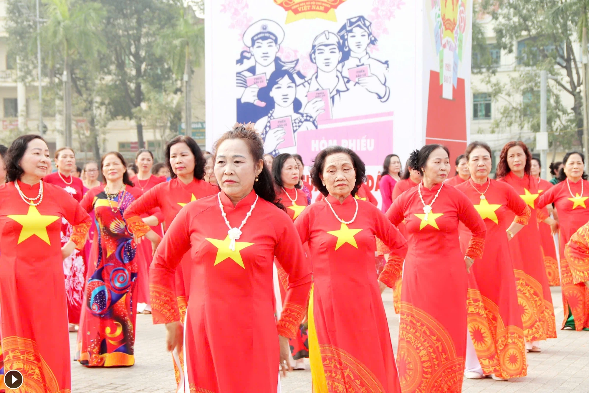 Đồng diễn dân vũ thể thao góp phần hưởng ứng “Tuần lễ áo dài - Di sản văn hóa Việt Nam” do Trung ương Hội LHPN Việt Nam phát động dịp 8/3