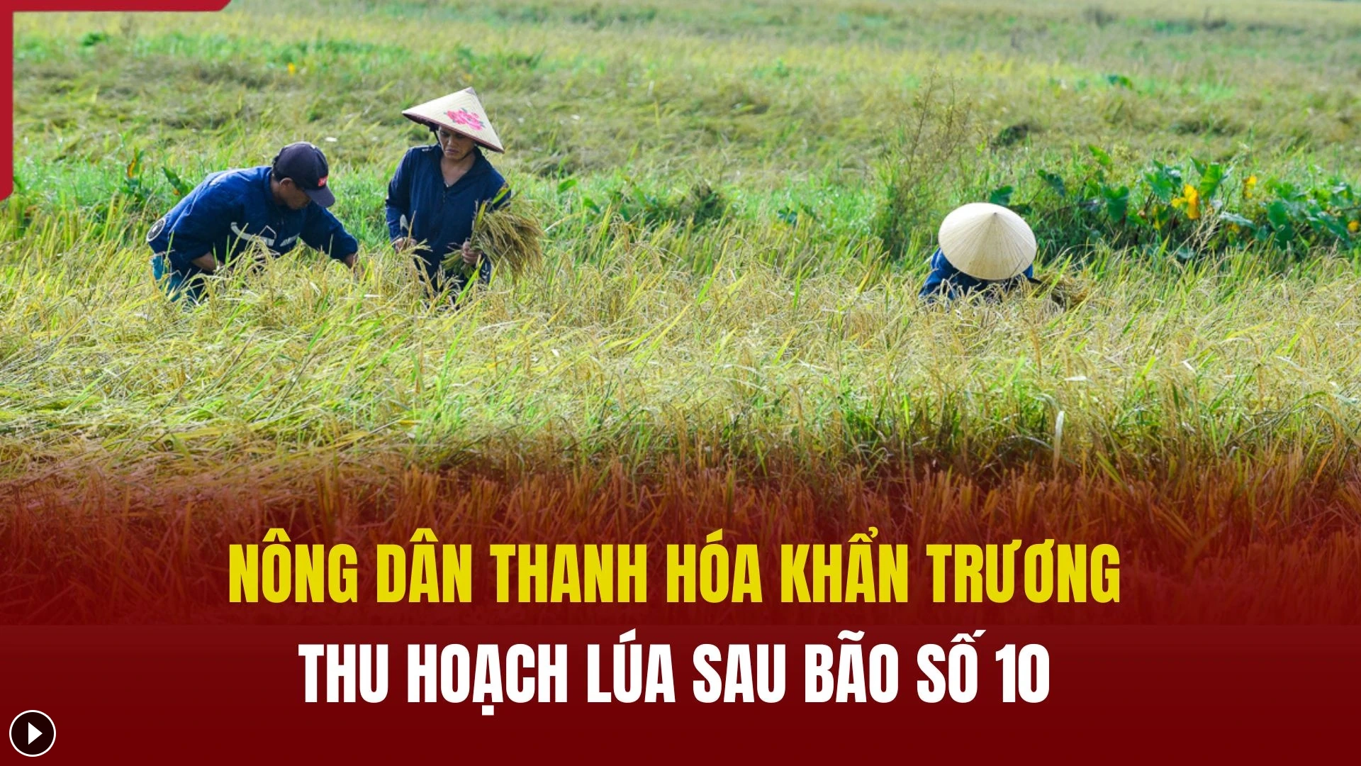 Sau bão số 10, hàng nghìn hecta lúa ở Thanh Hóa bị ngập úng, gãy đổ. Tranh thủ thời tiết nắng ráo, bà con nông dân đang khẩn trương ra đồng thu hoạch, “vớt vát” những bông lúa còn sót lại.