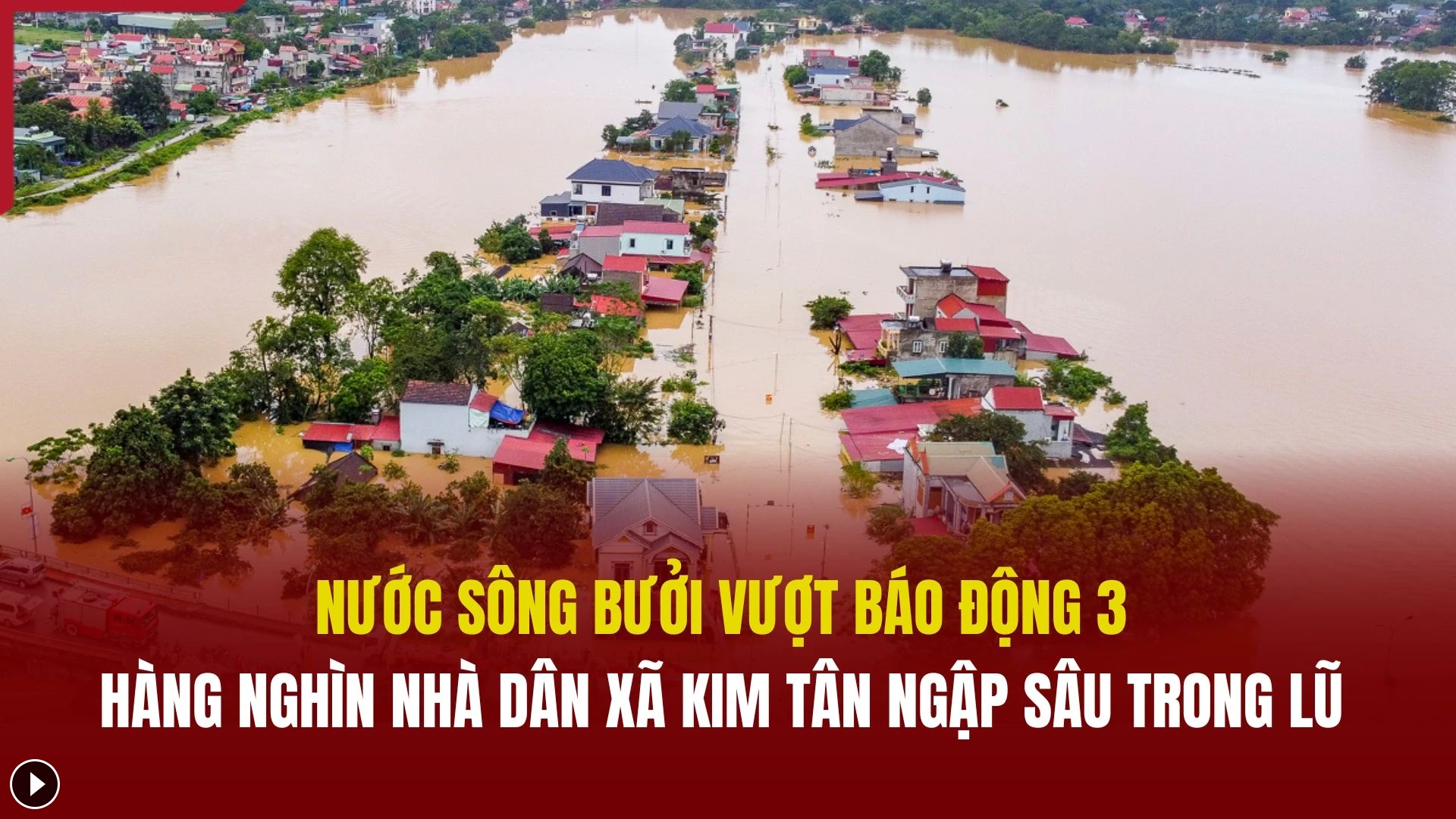 Video: Nước sông Bưởi vượt báo động 3, hàng nghìn nhà dân xã Kim Tân ngập sâu trong lũ.