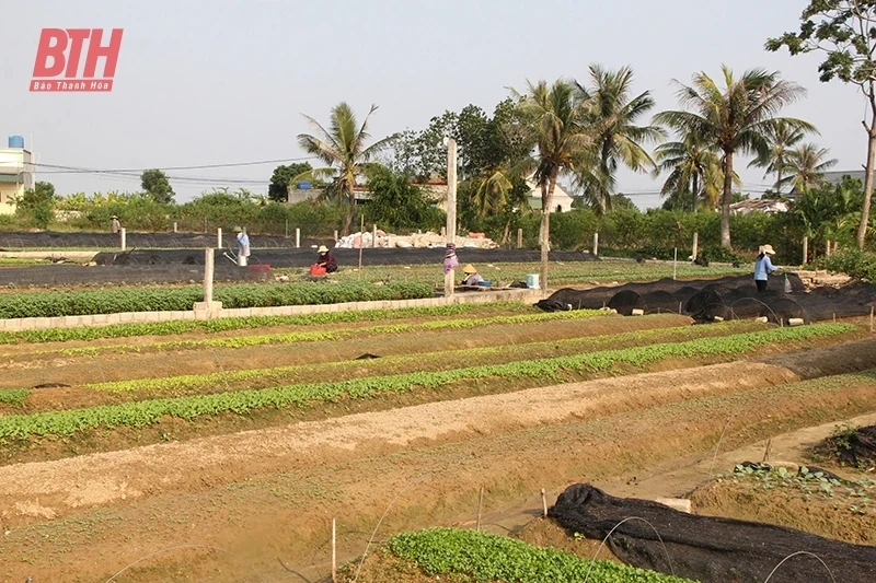 Cũng trong lĩnh vực trồng trọt, địa phương đã dồn đổi và bố trí đất để xây dựng các mô hình nhà lưới sản xuất rau an toàn tập trung, chất lượng, hiệu quả cao, liên kết, bao tiêu sản phẩm. Xã vận động Nhân dân chuyển đổi linh hoạt diện tích sản xuất các loại cây trồng kém hiệu quả sang các loại cây có giá trị kinh tế cao. Một trong những điểm sáng của xã là trình độ thâm canh cây trồng vụ đông bởi người dân cần cù chịu khó. Ghi nhận tại thôn Chính Đa trong xã những ngày tháng 10 này, những thân ruộng không lớn ngay sát các gia đình đều được kéo ống nước, đánh luống để trồng rau màu. Ngay trong vườn nhà ông Mai Ngọc Huệ, một khu nhà lưới áp dụng tưới nước tự động để trồng rau gối lứa quanh năm. Diện tích vườn nhỏ trước và hông nhà được ông tận dụng trồng hàng chục gốc đào, hàng năm cho thêm thu nhập hàng chục triệu đồng. Nhiều năm gần đây, hơn 322ha đất nông nghiệp của xã đang sinh lời với giá trị hàng chục tỷ đồng mỗi năm, giải quyết hàng trăm việc làm ổn định và nâng cao thu nhập cho người dân địa phương.