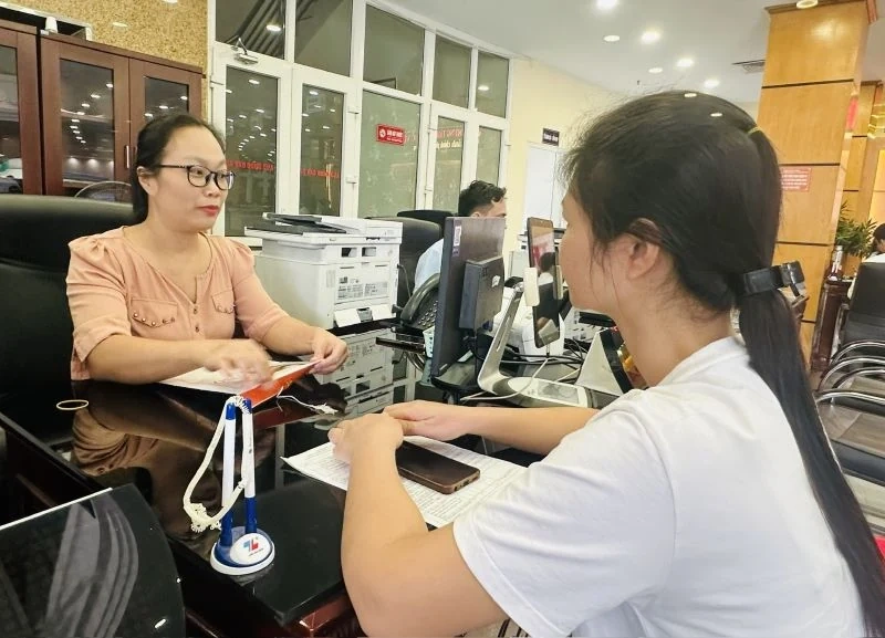 Cán bộ y tế hướng dẫn người dân làm thủ tục cấp giấy phép hoạt động khám bệnh, chữa bệnh.