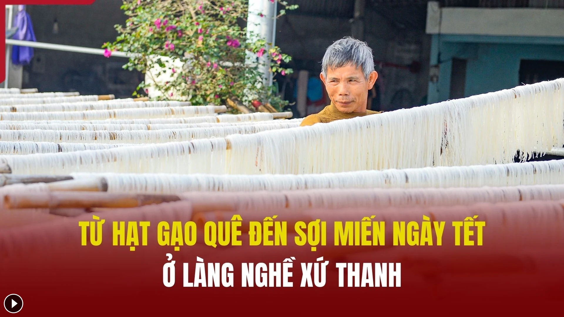 Cận kề Tết Nguyên đán, các hộ làm miến gạo tại xã Thăng Bình (Thanh Hóa) tất bật tăng ca, chạy hết công suất để kịp cung ứng sản phẩm cho thị trường. Sợi miến trắng trong làm từ gạo quê đang trở thành nguồn thu nhập ổn định của người dân làng nghề.