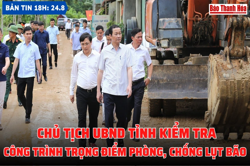Bản tin 18h ngày 24-8: Chủ tịch UBND tỉnh kiểm tra công trình trọng điểm phòng, chống lụt bão