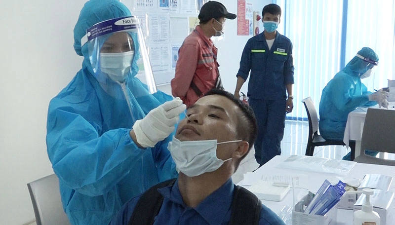 (Baothanhhoa.vn) - Từ nhiều ngày qua, Khu Kinh tế Nghi Sơn và các khu công nghiệp tỉnh Thanh Hóa đã phối hợp với các đơn vị y tế trên địa bàn chủ động thực hiện tầm soát COVID-19 cho cán bộ nhân viên, người lao động để kịp thời khoanh vùng chống dịch, hạn chế thấp nhất gián đoạn trong sản xuất kinh doanh.