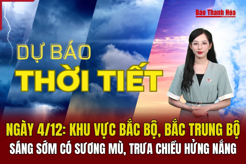 (Baothanhhoa.vn) - Theo Trung tâm Dự báo Khí tượng Thủy văn Quốc gia, ngày và đêm 4/12, Bắc Bộ và Bắc Trung Bộ có sương mù, trời lạnh và rét. Nam Trung Bộ, Tây Nguyên và Nam Bộ có mưa dông.