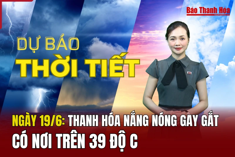 (Baothanhhoa.vn) - Theo thông tin từ Trung tâm dự báo Khí tượng thủy văn Quốc gia, ngày 19/6, ở khu vực Thanh Hóa tiếp tục xảy ra nắng nóng và nắng nóng gay gắt, có nơi nắng nóng đặc biệt gay gắt; với nhiệt độ không khí cao nhất phổ biến từ 37 - 39 độ C; có nơi trên 39 độ C.
