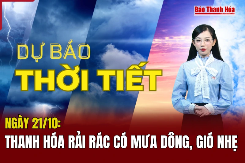 Dự báo thời tiết ngày 21/10: Thanh Hóa rải rác có mưa dông, gió nhẹ