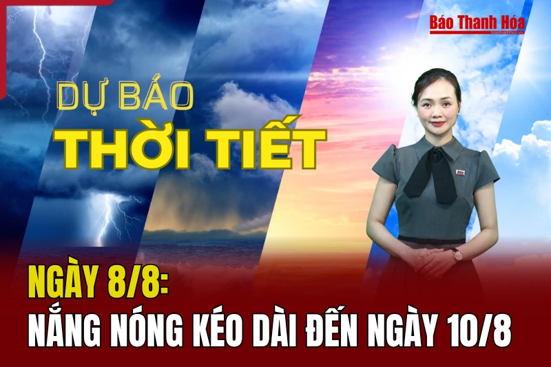 (Baothanhhoa.vn) - Theo dự báo của Đài Khí tượng thủy văn Thanh Hóa, các ngày 8 và 9/8, khu vực tỉnh Thanh Hóa tiếp tục nắng nóng, có nơi nắng nóng gay gắt với nhiệt độ không khí cao nhất ngày phổ biến 35 - 37 độ C, có nơi trên 37 độ C; độ ẩm tương đối thấp nhất ngày từ 55 - 60%.