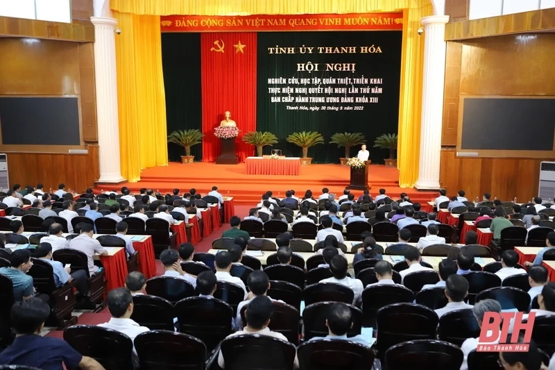 (Baothanhhoa.vn) - Sáng 30-8, Tỉnh ủy Thanh Hóa đã tổ chức hội nghị toàn tỉnh nghiên cứu, học tập, quán triệt Nghị quyết Hội nghị lần thứ 5, Ban Chấp hành Trung ương Đảng khóa XIII. Đồng chí Đỗ Trọng Hưng, Ủy viên Trung ương Đảng, Bí thư Tỉnh ủy, Chủ tịch HĐND tỉnh dự và trực tiếp truyền đạt Nghị quyết.