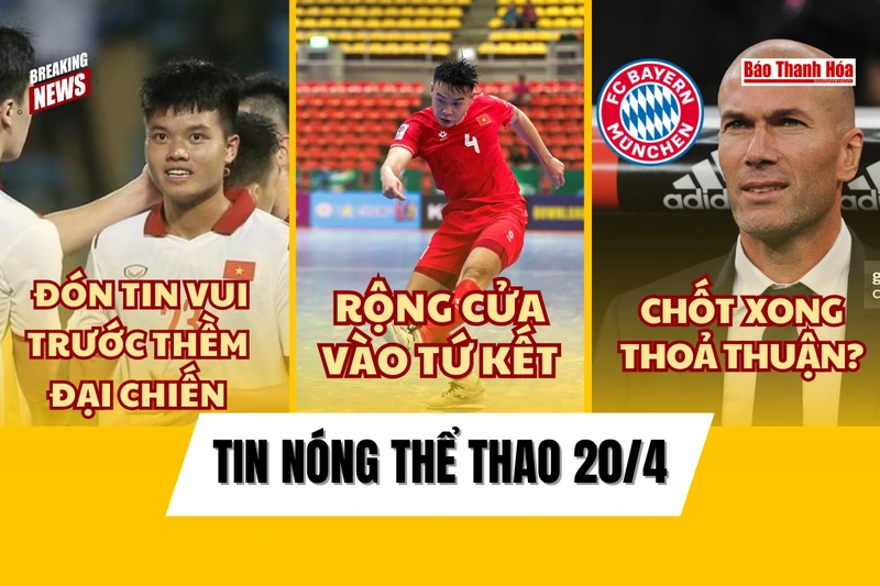 (Baothanhhoa.vn) - Những thông tin chính: Myanmar thua đậm, futsal Việt Nam rộng cửa vào tứ kết; U23 Thái Lan bất ngờ thua đậm U23 Ả Rập Xê Út; Zidane đạt thoả thuận ngồi “ghế nóng” tại Bayern Munich?...
