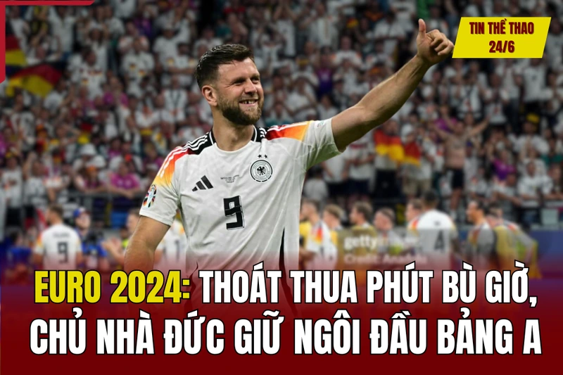 Tin thể thao 24/6: Thoát thua phút bù giờ, chủ nhà Đức giữ ngôi đầu bảng A EURO 2024