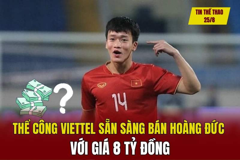 Tin thể thao 25/8: Thể Công Viettel sẵn sàng bán Hoàng Đức với giá 8 tỷ đồng