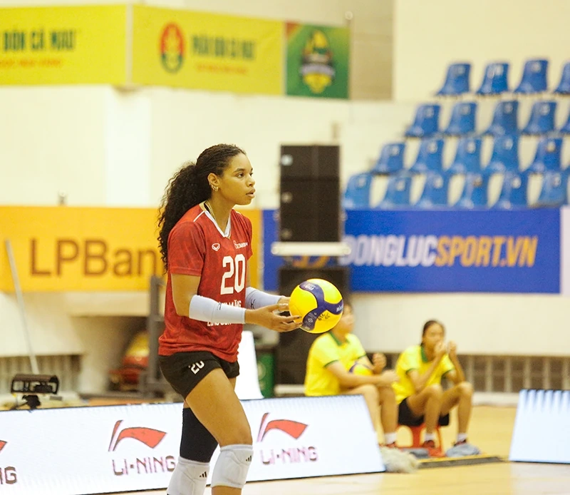 Ngoại binh Leah Hardeman (Số 20) là vận động viên ghi được nhiều điểm nhất cho Xi măng Long Sơn Thanh Hóa.
